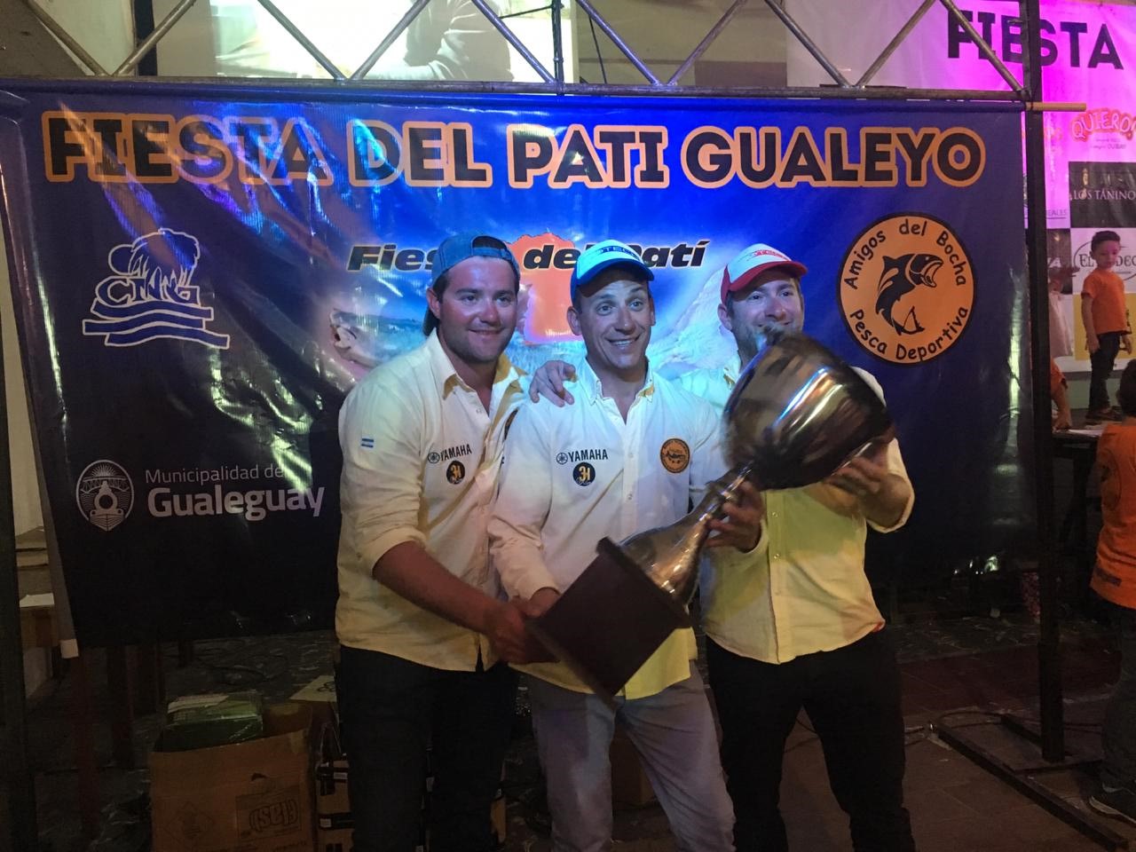 Con gran esfuerzo y entusiasmo, la Peña Pesquera “Los Amigos del Bocha” de Gualeguay, tomaron la iniciativa de realizar la primera Fiesta de Pesca del Patí Gualeyo, y con el apoyo de empresas locales y el municipio, se llevó adelante esta primera edición con un verdadero éxito: 120 lanchas inscriptas, fue el tope que pusieron los organizadores. Afortunadamente la especie y la zona rindieron muy bien, al cierre del evento quedaron en la cima del podio los siguientes equipos: