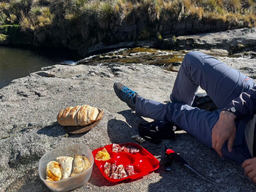 Al mediodía hicimos una pausa en una roca sobre un pozo profundo. Mientras saboreaba empanadas caseras, queso y salame, noté huellas en la arena. “Puma”, dije. Hugo asintió: por la profundidad, uno grande. Es impactante pensar que en un entorno tan pacífico pueda haber algo tan salvaje acechando cerca. Pero así es Argentina: bella, salvaje y mágica.
