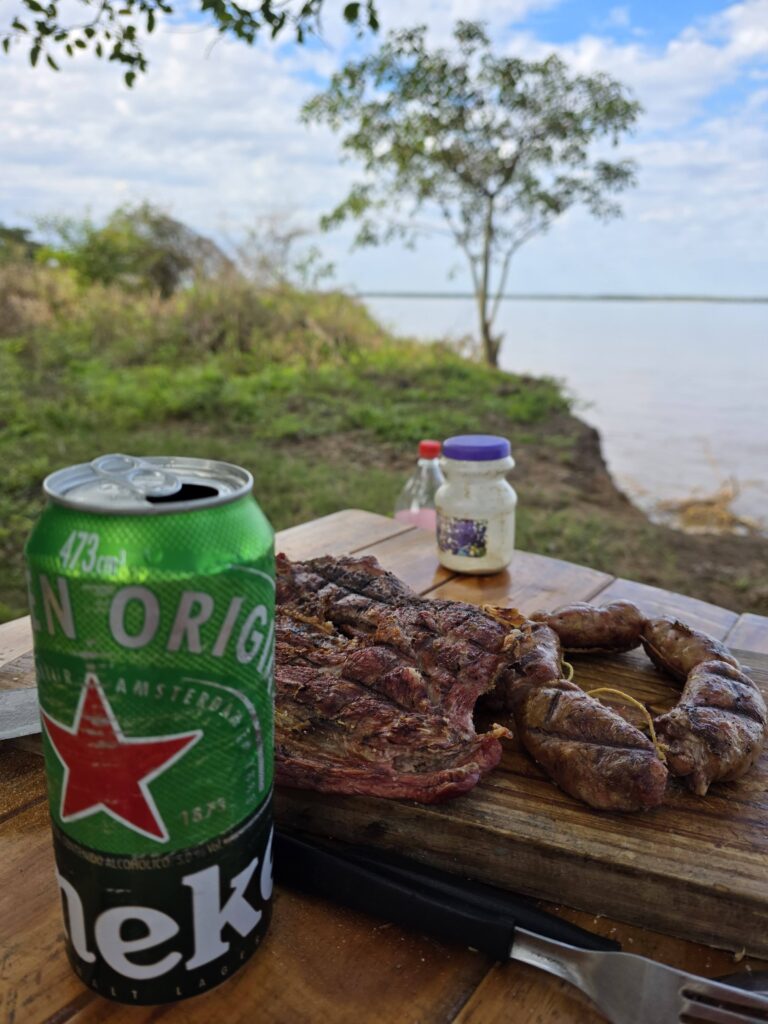 La mañana se nos pasó rápidamente, y llegado el mediodía, paramos en una zona de islas para saborear un asado con papas fritas de esos que tienen un sabor único cuando se disfruta en medio de esos paisajes litoraleños. La charla distendida, el análisis de los momentos vividos, y la planificación para lo que resta de la tarde.