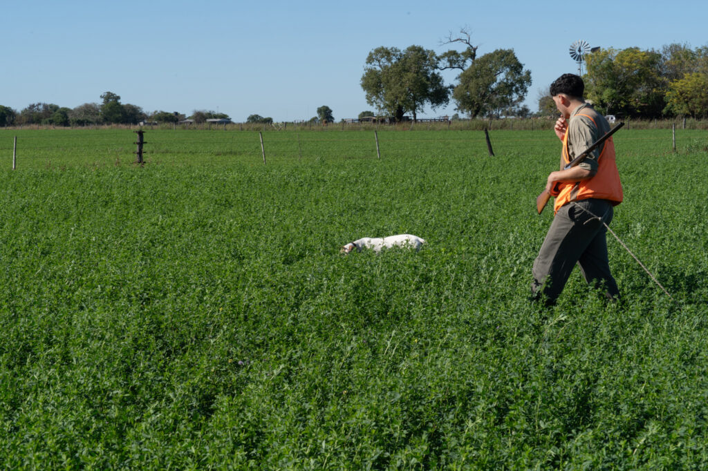 Comenzamos la temporada caminando sin escopeta, dándole a Milo sus primeros pasos en el campo. En nuestra zona no abundan los tambos, ni las pasturas ideales para la perdiz, pero nos las ingeniamos buscando en zonas de cañada, donde el pasto natural se encuentra con algún potrero de cereal: comida y dormidero. Con cada salida, Milo crecía… y nosotros también.