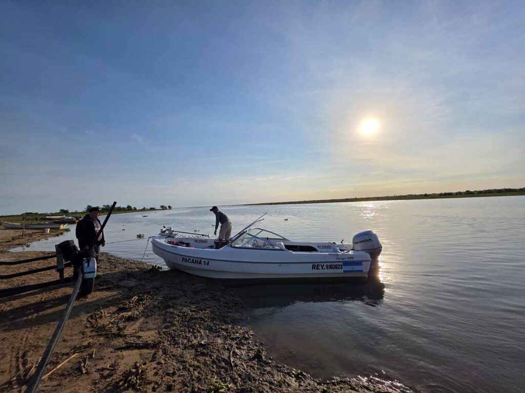 A primeras horas de la mañana, estábamos en la casa de Miguel, estrechándonos en un abrazo y, con el mate listo, caminamos hasta la costa en donde nos esperaba nuestra lancha. Abraham, ya estaba listo y, tras los saludos, emprendimos la navegación.
