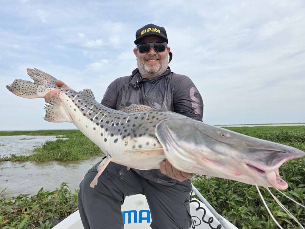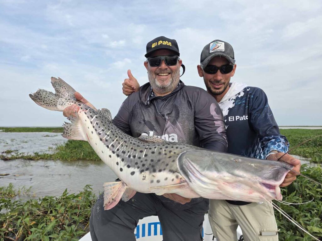 Sin demorar más tiempo, pegamos la vuelta y volvimos a hacer la bajada… esta vez sí, otro pique en mi señuelo y la corrida lateral descontrolada que me avisaba que tenía un pintado en el extremo haciendo toda su fuerza para liberarse… ¡Locura total Tres pasadas, dos capturas, en un tramo de no más de 200 metros. Cosas maravillosas que tiene la pesca y que siempre nos van a sorprender. Fotos, y la devolución de esta belleza de pez que merece ser cuidada porque es el futuro de la pesca.