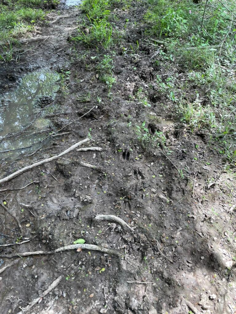 Ni se imaginan la cantidad de rastros frescos que había por todos lados, en el ingreso al monte había muchos rastros de chanchos y, a medida que ingresábamos al monte, predominaban los axis.
